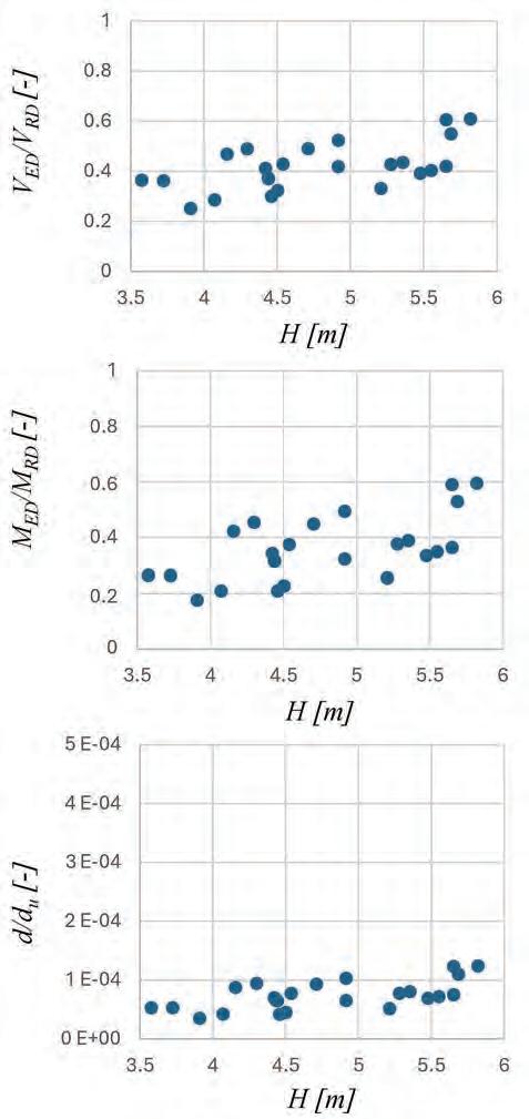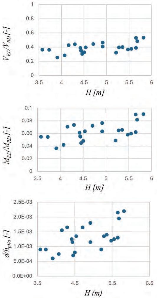 • Si è proposta una metodologia semplificata per la stima della vulnerabilità idraulica di una struttura da ponte in c.a. all’impatto di correnti iperconcentrate a pelo libero, ipotizzato il fondo alveo fisso, dunque non erodibile. La valutazione della vulnerabilità costituisce uno step fondamentale nella definizione del rischio idraulico dei ponti; la procedura prevede di accoppiare un modello idraulico bidimensionale monofasico ad un modello strutturale agli elementi finiti per la definizione della richiesta in termini di sollecitazioni e deformazioni (EDP). Definiti i valori limite di spostamenti in testa alla pila ed il taglio e momento nelle sezioni maggiormente sollecitate, utili a classificare diversi livelli di danneggiamento, è possibile costruire una curva di vulnerabilità al variare dell’intensità della colata. Un ulteriore spunto di riflessione per futuri approfondimenti è dato dalla possibilità di associare ai livelli limite fisici esposti, delle limitazioni qualitative associate al concetto di funzionalità dell’opera, quali ad esempio il rispetto della condizione sul franco idraulico minimo da garantire per la salvaguardia della sicurezza, come definiti da normative tecniche vigenti. Per le vigenti NTC2018 il franco idraulico, definito come la distanza tra la quota del pelo libero immediatamente a monte l’attraversamento e la quota di intradosso del ponte, è da assumersi non inferiore a 1,5 m; tenendo conto delle previsioni sul trasporto solido di fondo e sul materiale flottante un valore minore potrebbe essere collocato in una condizione di vulnerabilità diversa da zero.
