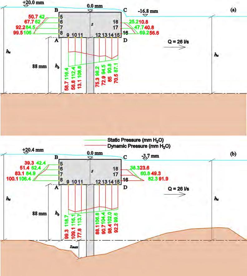 nologia generale. Nella fattispecie, a parità di condizioni idrauliche e geometriche, la buca di scavo subisce un incremento plano altimetrico significativo all’aumentare del rapporto di ostruzione. Ovvero, all’incremento di ΔA corrisponde un aumento della profondità di scavo, della estensione della buca e del volume eroso (Figura 1.3.4). Inoltre, la morfologia di equilibrio risulta essere essenzialmente tridimensionale, con fenomeni erosivi significativi in corrispondenza delle pareti laterali per alti valori di sommergenza (Figura 1.3.4b), indipendentemente dalla forma geometrica del deck.