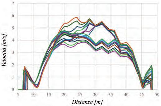 camente suggerito che il rapporto tra il diametro della pila sperimentata e la larghezza sia non superiore a 0.12. Per dirimere i dubbi sull’utilizzo di una pila del diametro di 16 cm in un canale largo 100 cm, sempre con una pila del diametro di 16 cm, è stato numericamente riprodotto e messo a confronto il campo di moto in un canale largo 100 e 200 cm. Le differenze di velocità valutate in una ampia serie di punti di confronto attorno alla pila non mostrano differenze in alcun modo significative. In Figura 5.17 a titolo d’esempio è riportato il confronto tra le componenti delle velocità longitudinali e verticali calcolate in una sezione in asse alla pila e ortogonale alla corrente.