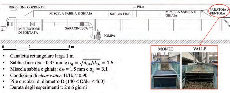La stima dell’erosione alle pile dei ponti rappresenta una delle principali sfide per gli ingegneri idraulici. Considerata l’importanza di tali infrastrutture e il loro impatto economico e sociale sulla vita quotidiana, è fondamentale definire criteri chiari e validati per una corretta progettazione (Kothyari et al., 1992; Melville, 1997). Nonostante l’ampia letteratura sviluppata negli ultimi anni, rimangono numerosi aspetti non adeguatamente esplorati. Ad esempio, la definizione di equilibrio non è ancora univoca, poiché diversi approcci sono stati proposti da vari autori (tra gli altri, Raikar e Ettema, 1983 e 1985; Melville e Sutherland, 1988; Hager e Oliveto, 2002; Richardson e Davis, 2001; Palermo e Pagliara, 2020). A tal riguardo, vale la pena notare che alcuni studi hanno dimostrato che una configurazione di equilibrio può essere raggiunta solo dopo durate molto lunghe (teoricamente infinite). Pertanto, diversi autori hanno introdotto un fattore temporale nelle equazioni predittive (Melville e Coleman, 2000; Oliveto et al., 2004; Oliveto e Hager, 2002 e 2005; Lança et al., 2013; Franzetti et al., 2022). Tuttavia, l’evoluzione dell’erosione non può protrarsi indefinitamente su scala reale. In altre parole, gli eventi di piena possono avere durate diverse ma comunque finite. Di conseguenza, si può ragionevolmente supporre che, dopo una certa durata (dipendente dalle caratteristiche idrauliche, granulometriche e dalla configurazione geometrica), venga raggiunta la profondità massima di erosione (Lança et al., 2013).