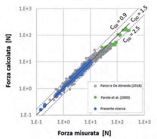 Figura 5.9 Confronto tra i risultati ottenuti nel presente studio e alcune delle formule previsionali riportate in letteratura.