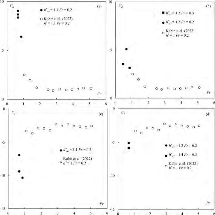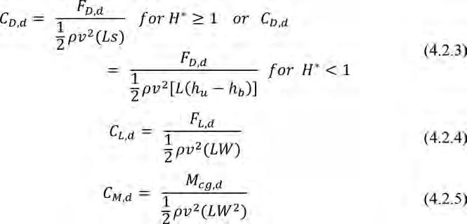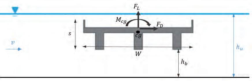 Particolarmente importante dal punto di vista applicativo risulta essere la stima delle azioni dinamiche esercitata dall’acqua allorquando l’impalcato sia parzialmente o totalmente sommerso. Nella fattispecie, assunta Uu la velocità media della corrente a monte del deck, risulta essere particolarmente importante la stima dei coefficienti di drag Cd e lift Cl, valutabili dalle seguenti espressioni: