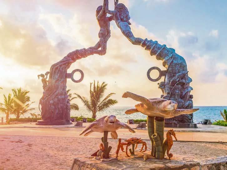 Playa del Carmen es uno de los sitios más visitados de la Riviera Maya y, en general, del sureste mexicano. Es famoso por sus playas bordeadas de palmeras y los arrecifes de coral. La famosa Quinta Avenida es la calle más visitada por turistas nacionales y extranjeros, se extiende en paralelo a la playa, con cuadras de tiendas, restaurantes y clubes nocturnos que van desde bares, hasta clubes de baile. Para los amantes de la naturaleza y aventura, Playa del Carmen y sus alrededores ofrecen una gran variedad de actividades que puedes realizar en alguno de sus emocionantes parques naturales y temáticos, explorando las cavernas y ríos subterráneos, o si lo prefieres, adentrarte en el corazón de la Tierra visitando alguno de los 2,500 cenotes que yacen debajo de la Riviera Maya, pozos naturales en donde podrás nadar, snorkelear o bucear.