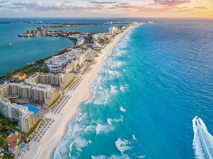 Con sus playas de fina arena blanca, aguas azul turquesa y espectaculares arrecifes de coral que yacen frente a sus costas, Cancún es uno de los destinos turísticos más populares de México. En el Boulevard Kukulkán, mejor conocido como la zona hotelera, encontrarás hoteles, restaurantes, centros comerciales y clubes nocturnos. Además, cuenta con diversas playas con certificación Blue Flag, donde los visitantes pueden disfrutar de interminables y memorables días. Algunas de las playas más bonitas de la zona hotelera son Playa Gaviota Azul y Playa Delfines. Cancún es un paraíso para los amantes de la naturaleza, la aventura y la cultura Maya, así como de grandes bellezas naturales que puedes encontrar en la Laguna Nichupté.