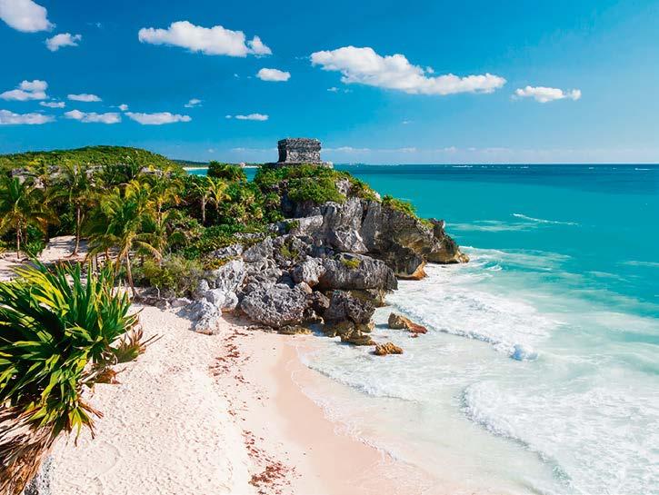 Hogar de algunos de los sitios arqueológicos mejor conservados de la región, Tulum forma parte de la Riviera Maya, con gran riqueza de cenotes, lagunas y sitios arqueológicos que se encuentran a los alrededores. Además de su belleza arqueológica, Tulum es popular por sus playas que se extienden a lo largo de 16 kilómetros hasta la Reserva de la Biósfera Sian Ka'an. Este destino está conformado por tres diferentes zonas: la zona arqueológica, "El Pueblo" (El Centro) y la zona hotelera, que se divide en norte y sur. Para extensiones de arena, la puedes encontrar en el lado norte; pero si quieres un ambiente un poco más animado, en lado sur se encuentran algunos de los más populares clubes de playa, hoteles y restaurantes que suelen contar con DJ's.