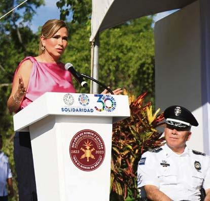 Asimismo, el General de Brigada Diplomado Estado Mayor, Héctor Jiménez Aldana, Comandante de la 34 Zona Militar, dijo: "es un honor estar aquí con ustedes para celebrar la conmemoración del 30 aniversario de la creación del municipio de Solidaridad y, al mismo tiempo, reconocer a nuestra Alma Máter, el Heroico Colegio Militar. Hoy, a 200 años de su creación, sigue siendo una de las instituciones de mayor tradición en México, en donde se forjan los futuros mandos del Ejército Mexicano".