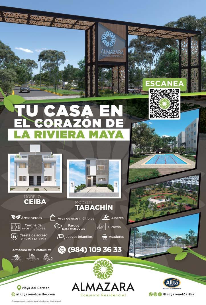 PERIÓDICO ESPACIO DE QUINTANA ROO, periódico quincenal octubre de 2022. Número de Certificado de Reserva otorgado por el Instituto Nacional del Derecho de Autor: 04-2016-040119073000-101. Número de Certificado de Licitud de Título:16745. Número de Certificado de Licitud de Contenido. 16745. Domicilio de la Publicación: Av. Tankah Mz. 1 lote 68 S.M.24 Cancún, Quintana Roo, Municipio Benito Juárez C.P.77509. Nombre y domicilio Imprenta: Compañía Tipográfica Yucateca S.A. de C.V., Calle 60, No.521, Col. Centro, Mérida, Yucatán, C.P. 97000. Encuéntranos en: Av. Copan sm 19 Tel: 887 10 10 / 887 01 87 Una publicación de: Directorio Ing. Saira Muñoz Gámez. Directora General. CP. Luz