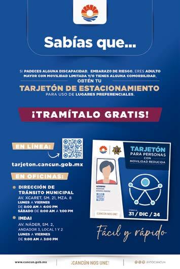 PERIÓDICO ESPACIO DE QUINTANA ROO, periódico quincenal Marzo 2024. Número de Certificado de Reserva otorgado por el Instituto Nacional del Derecho de Autor: 04-2016-040119073000-101. Número de Certificado de Licitud de Título:16745. Número de Certificado de Licitud de Contenido. 16745. Domicilio de la Publicación: Av. Tankah Mz. 1 lote 68 S.M.24 Cancún, Quintana Roo, Municipio Benito Juárez C.P.77509. Nombre y domicilio Imprenta: Compañía Tipográfica Yucateca S.A. de C.V., Calle 60, No.521, Col. Centro, Mérida, Yucatán, C.P. 97000. Una publicación de: