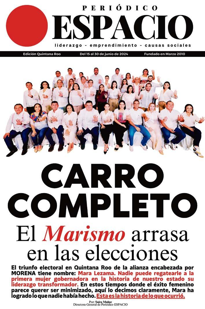 www.periodicoespacio.com Del 15 al 30 de Junio de 2024 | Periódico Espacio @EspacioNoticias +3.5M seguidores @PeriodicoEspacioCancun +100k seguidores