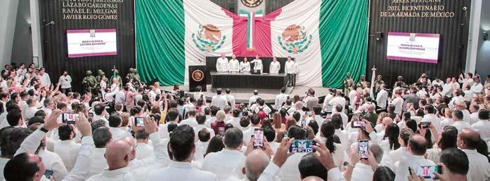 Con la bendición desde el centro del país del presidente López Obrador, en la ceremonia de su asunción desfila ron funcionarios federales y goberna dores, la élite empresarial del estado y otras entidades, líderes de sectores y hasta políticos de otros partidos que en un pasado reciente no confiaban en su proyecto y que, incluso, se le opusieron. Pero ahí estuvieron todos, cerrando filas con ella.