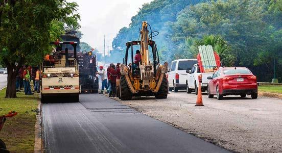 El carril de sur a norte está completamente terminado, en el tramo de dichas arterias, con la técnica denominada reciclado de pavimento asfáltico en sitio por medio de aire caliente y colocación de nueva carpeta asfáltica, con la maquina conocida como “dragón”.