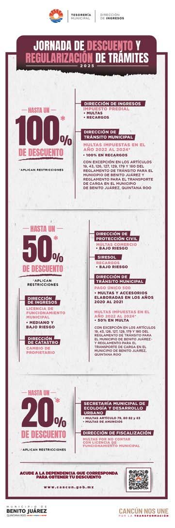 Además, en permisos de uso de suelo comercial se otorga 20 por ciento de descuento en el pago de derechos. No se consideran hoteles ni sus centros de consumo. Por permisos para anuncios publicitarios, se otorga 20 por ciento de descuento, siempre que sea para negocios de bajo y mediano riesgo. Tampoco se considera a los hoteles y sus centros de consumo.