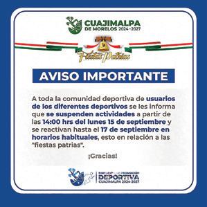 SOCIEDAD Los deportivos de nuestra alcaldía suspenderán sus labores desde el 15 de septiembre.