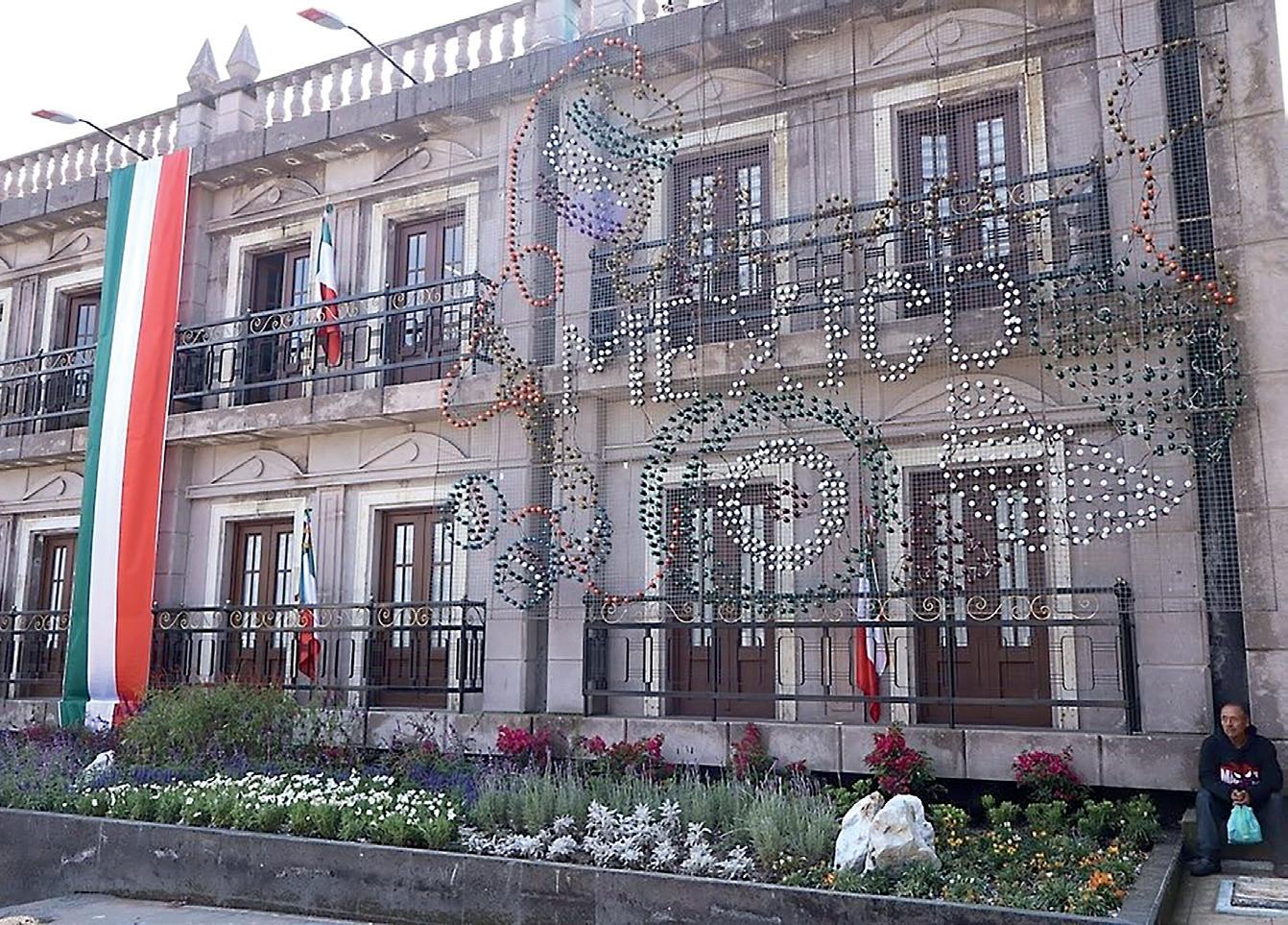 › La fachada principal de la alcaldía fue adornada con una nueva iluminación.