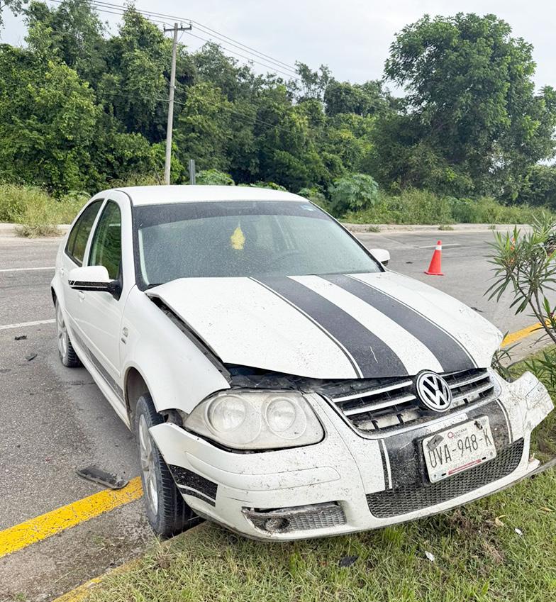 lesionados Daniel B.T. y Javier T.A. Se trata de un vehículo Volkswagen tipo Jetta, con placas UVA948K de Quintana Roo, conducido por Magdiel L.L., de 37 años de edad. El masculino antes mencionado chocó con una camioneta Beijing, tipo Baic, con placas UVU233L de Quintana Roo, que conducía Javier T.A., de 68 años, quien resultó lesionado junto con su acompañante.