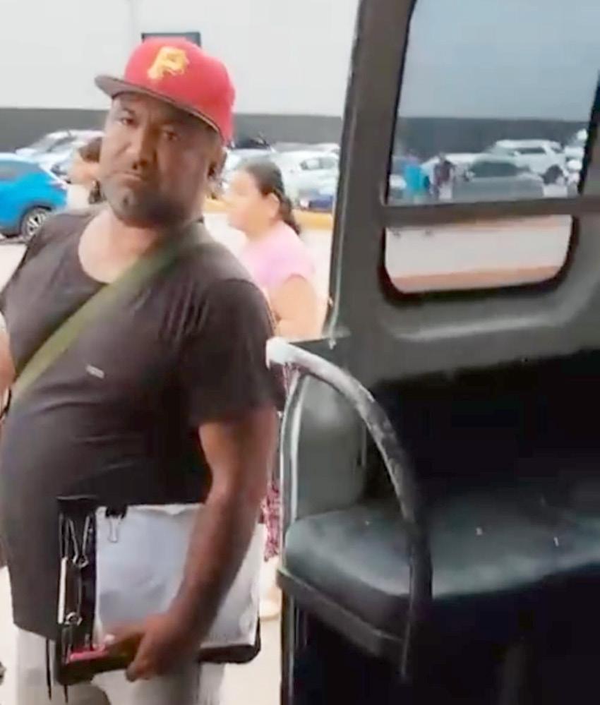 Posteriormente, aparece una mujer que, antes de acercarse a la ventanilla del conductor, este le dice a una de sus pasajeras que la grabe porque esa es la jefa de los delincuentes.