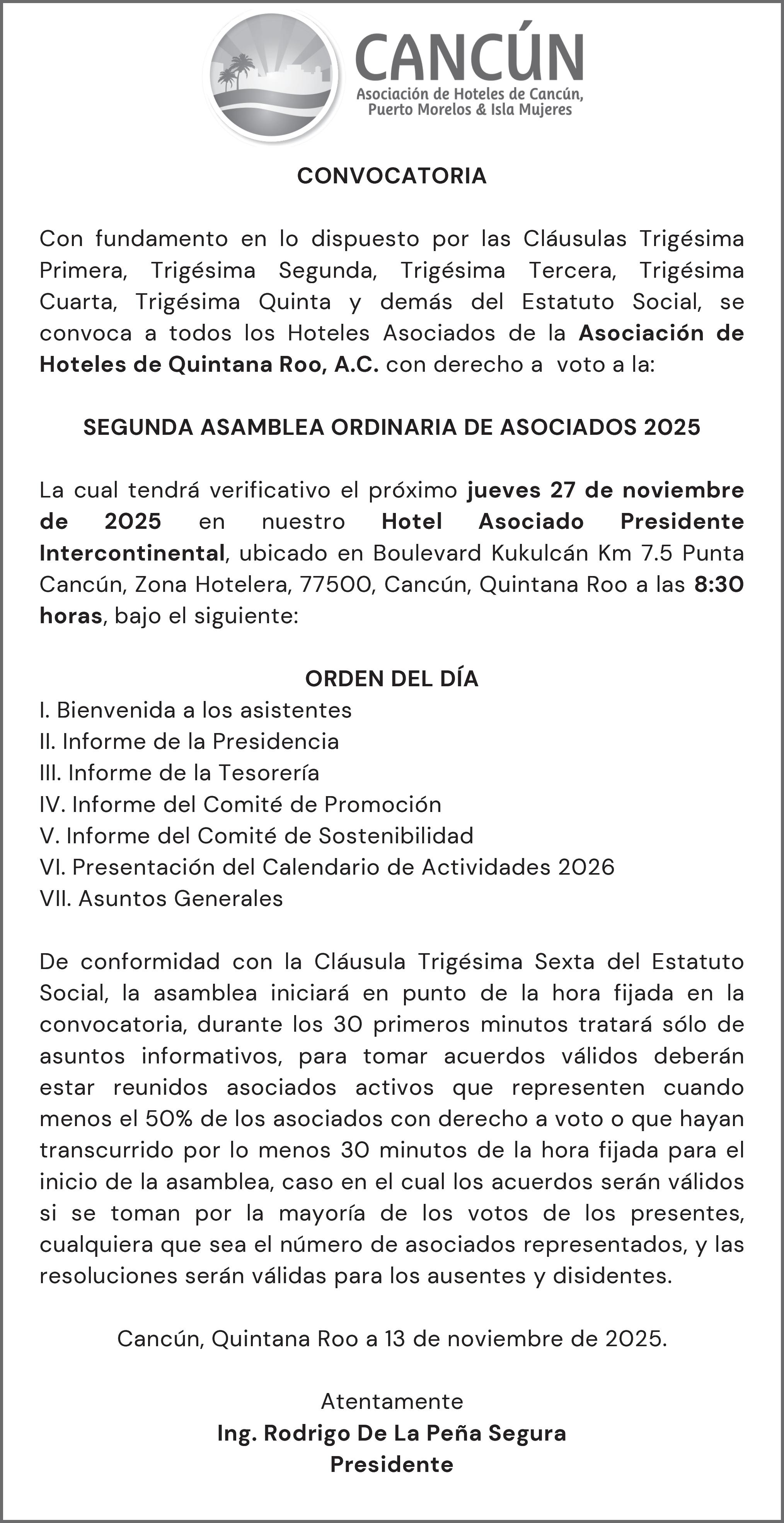 “Bajo esa misma visión, en Cancún estamos viviendo una etapa de grandes transformaciones; construyendo una ciudad más ordenada, con mayor inversión y con obra en muchos lados, que significa mayor bienestar. Trabajamos de la mano con nuestra gobernadora Mara Lezama y el respaldo de nuestra presidenta de México, Claudia Sheinbaum Pardo, porque estamos convencidos de que el crecimiento sólo tiene sentido cuando se con-