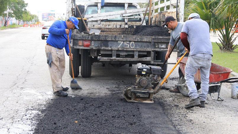 de trabajos de bacheo con material tanto frío como caliente, en puntos estratégicos de la ciudad. “Queremos que Cancún se mue-