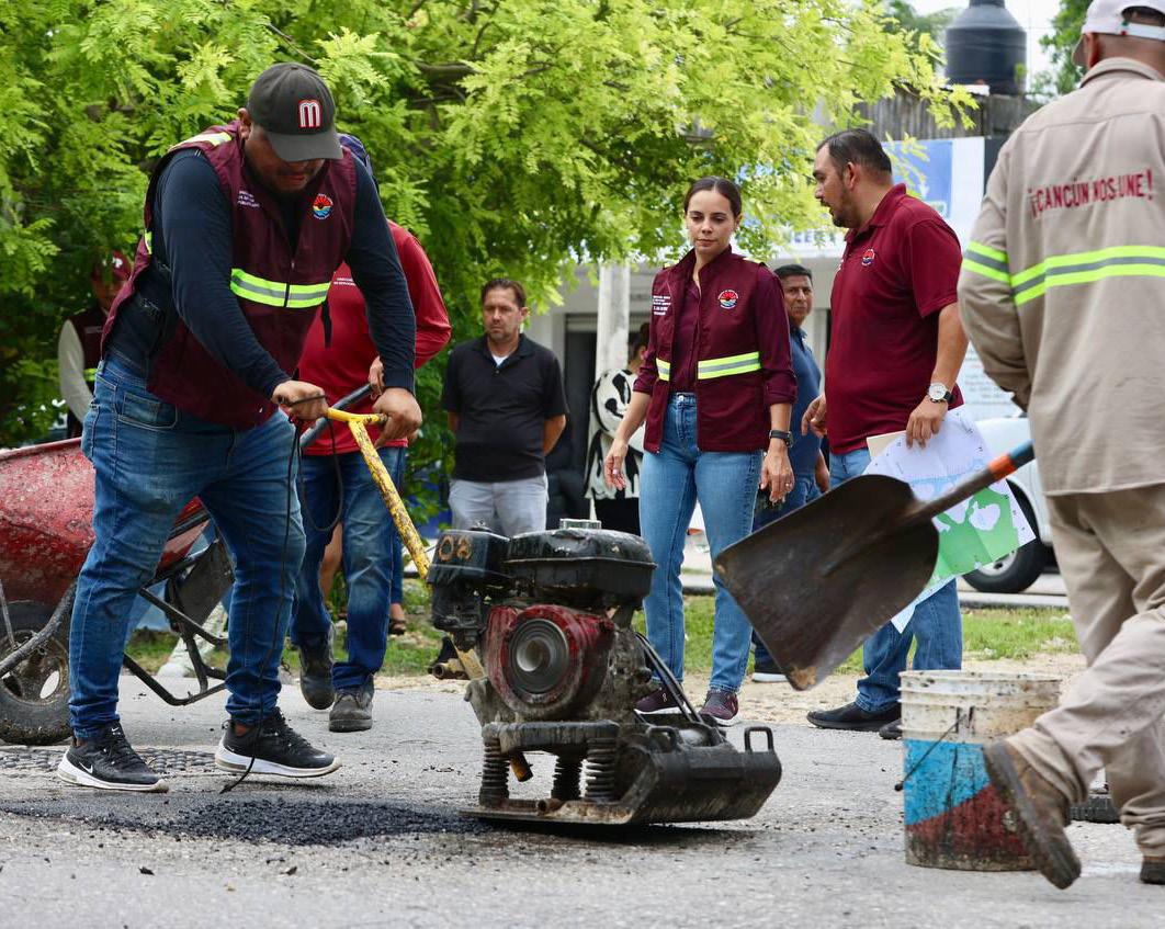 va mejor. Estamos trabajando todos los días para construir una ciudad más segura, accesible y ordenada, con calles en mejores condiciones que permitan una movilidad más ágil para peatones, automovilistas y el transporte público”, expresó. Los trabajos se han desplegado a lo largo de más de 80 vialidades clave, entre las que destacan: Kabah, Arco Vial, Portillo, Nichupté, Andrés Quintana Roo, Miguel Hidalgo, La Luna, Lak’in, Talleres, Leona Vicario, 20 de Noviembre, Labná, Chac Mool, Huayacán y Chichén Itzá, entre muchas más. También se ha brindado atención en puntos neurálgicos como la delegación Alfredo V. Bonfil y en importantes prolongaciones como Bonampak y Tulum, conectando mejor las zonas conurbadas y fomentando una circulación más fluida.