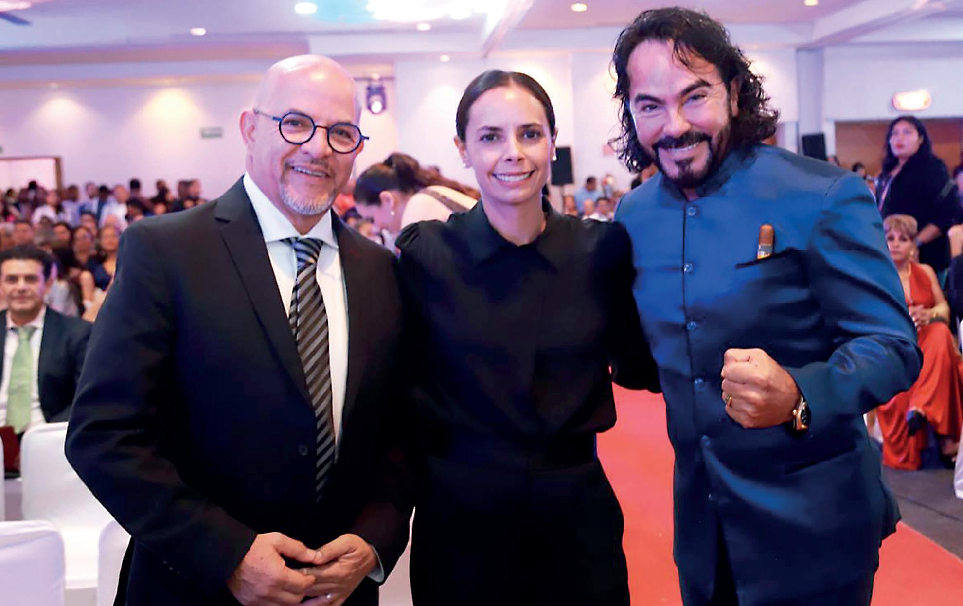 › Alejandro Celorio, propietario del restaurante BOA, quien también fue distinguido, acompañado de Pepe Gómez y José Alberto Gómez Millar.