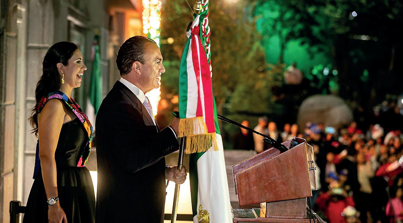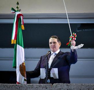 › El alcalde Carlos Orvañanos ondeó la bandera nacional después de dar el tradicional Grito de Independencia.