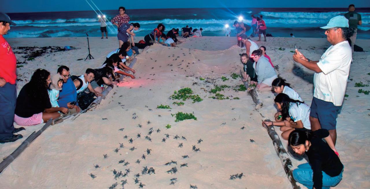 › Los asistentes fueron testigos del ingreso al mar de 420 crías provenientes de los últimos nidos de tortuga verde.