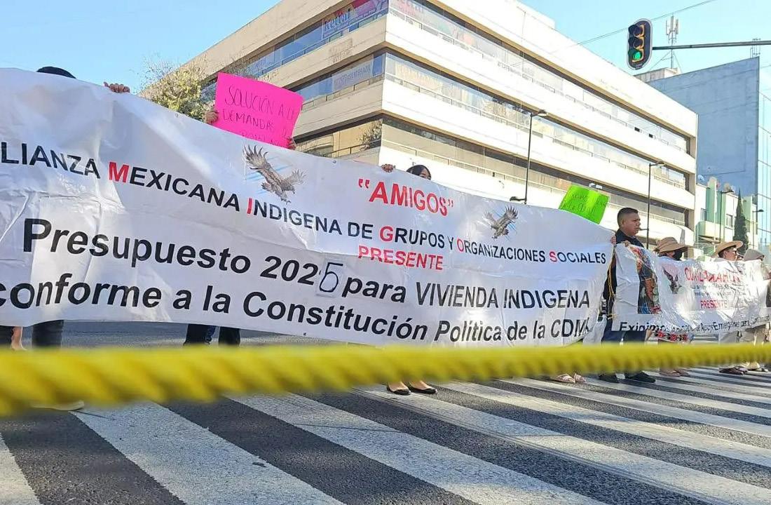 Conflicto. Integrantes de la Alianza Mexicana Indígena de Grupos y Organizaciones Sociales realizaron una protesta simultánea en calles de la colonia Centro en la Alcaldía Cuauhtémoc.