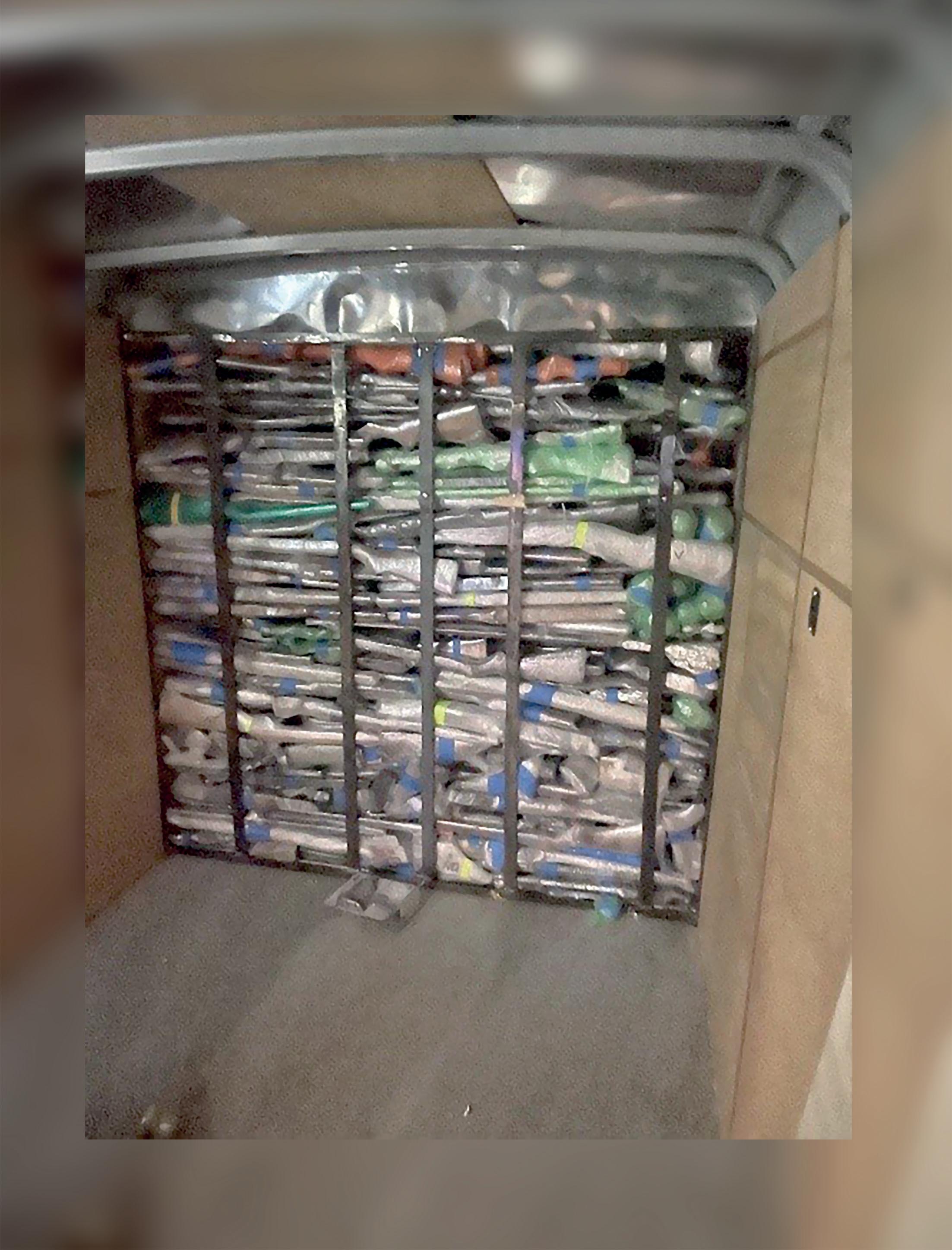 EMILIO RAMÍREZ CORTÉS, CIUDADANO MEXICANO, Y SU HIJO EDGAR RAMÍREZ DÍAZ OCULTARON ESTAS ARMAS TRAS FALSAS PAREDES EN DOS REMOLQUES DE VEHÍCULOS QUE VIAJABAN A MÉXICO.