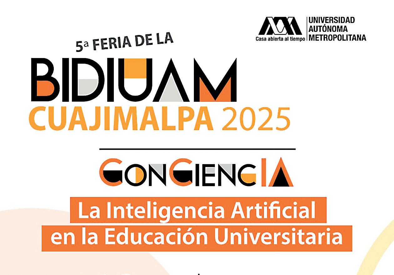 Educación. La UAM Cuajimalpa invita a su comunidad universitaria a participar en la 5a Feria de la Biblioteca Digital UAM (BiDiUAM), bajo el tema “ConCiencIA: La Inteligencia Artificial en la Educación Universitaria”.