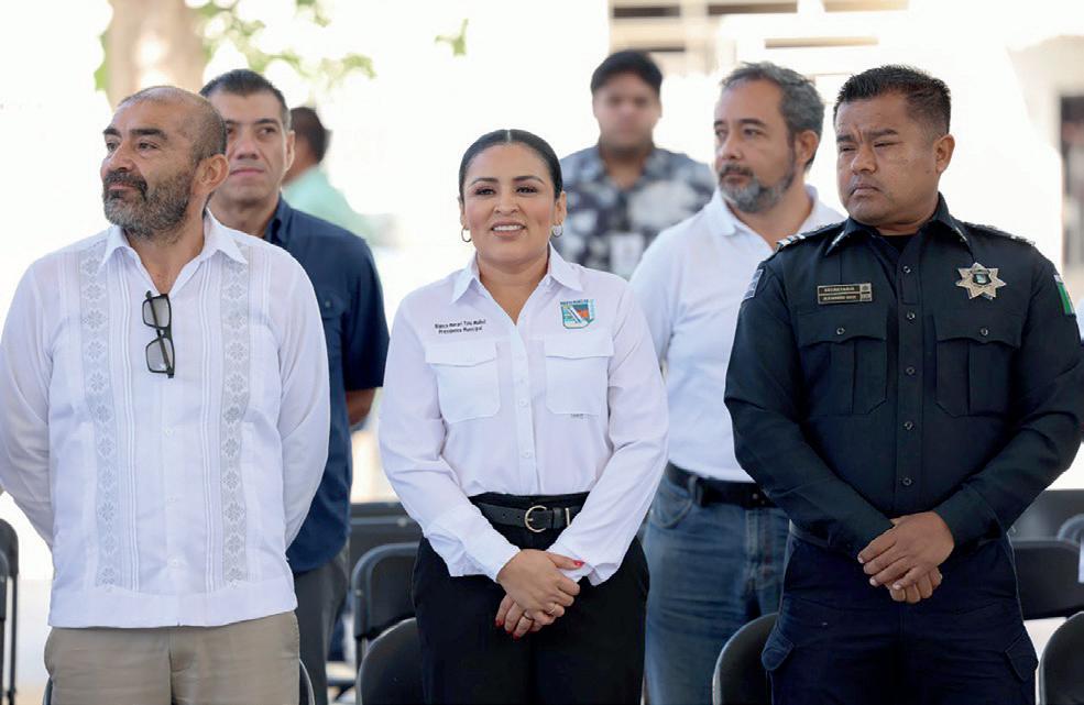 La presidenta municipal Blanca Merari Tziu Muñoz, extendió una amplia felicitación a los 35 elementos de la Secretaría de Seguridad Ciudadana que concluyeron el Curso de Formación Inicial Policial luego de más de 500 horas de instrucción en diferentes habilidades, lo que significa AYUNTAMIENTO