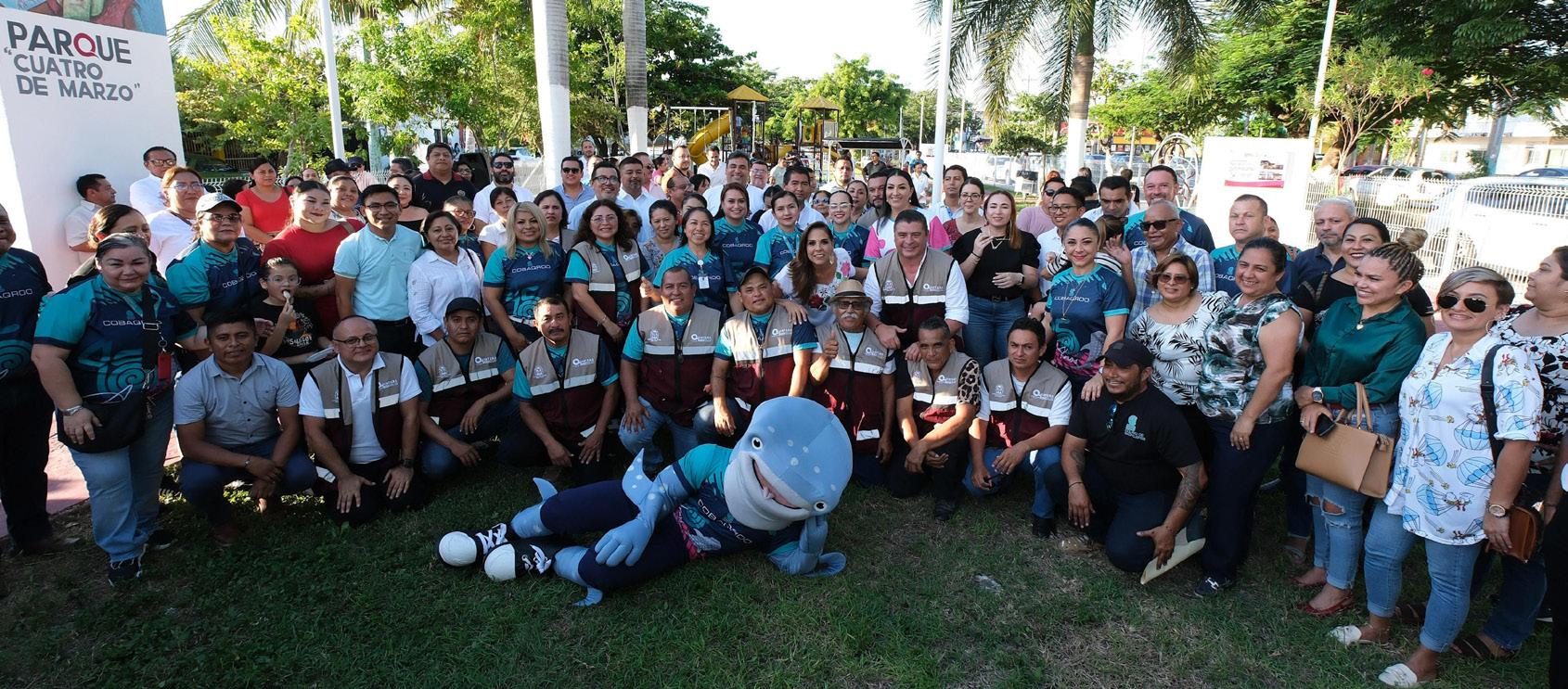 Para el bienestar de casi 2 mil familias de la colonia 8 de Octubre, la gobernadora Mara Lezama Espinosa les entregó el rescatado y remodelado parque 4 de Marzo a través del programa “Que Brille Chetumal”, al que se sumaron jóvenes del Colegio de Bachilleres.
