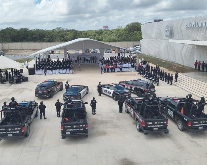 El contralmirante enfatizó que se continuarán implementando acciones integrales que involucren a todos los sectores y niveles de gobierno, con un enfoque preventivo y de reinserción social y que garanticen el bienestar integral de las y los quintanarroenses y de los visitantes. Durante este informe, resaltó las acciones hechas respecto a la dignificación de las condiciones laborales, en donde detalló la inversión estratégica en equipamiento e indumentaria para garantizar el desempeño seguro y eficaz de los elementos de seguridad, adquiriendo equipo especializado para la protección, que incluye chalecos y cascos balísticos, equipo antimotín,
