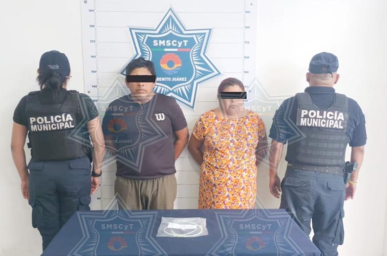 Delitos. Dos personas detenidas por la SMSCyT en la Región 228 de Cancún por intento de robo a una mujer de la tercera edad, mediante engaños querían despojarla de sus pertenencias.