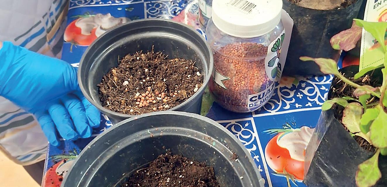 › Una de las participantes mostró con orgullo las plantas que ahora adornarán su casa.