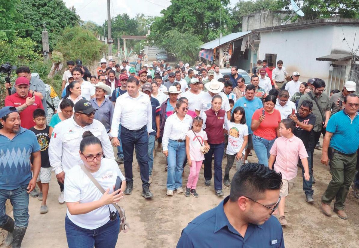 › La presidenta Claudia Sheinbaum constató las afectaciones causadas por las lluvias y supervisó la entrega de apoyos.