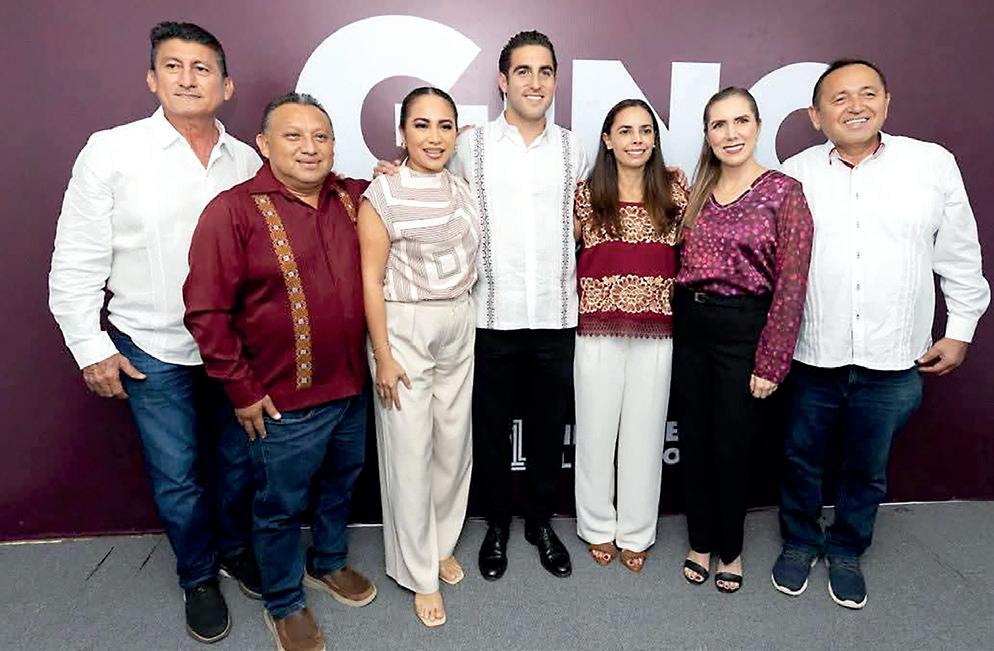 › Con Johana Acosta, presidenta del CEE de Morena en Quintana Roo; Ana Paty Peralta alcaldesa de BJ; Atenea Gómez, presidenta de Isla Mujeres y otros ediles.