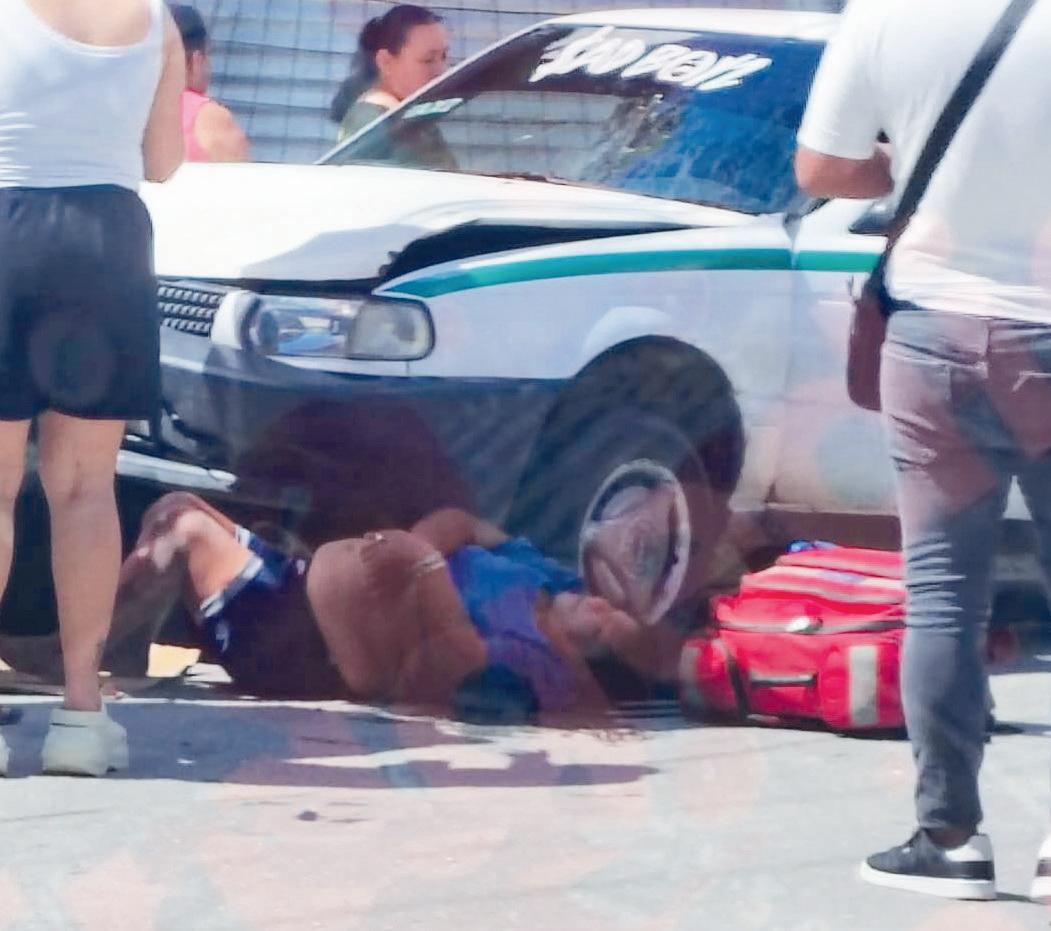 El conductor del taxi no se percató de la presencia del vehículo ligero y lo arrastró varios metros, provocando que la motocicleta golpeara a la mujer y la empujara hacia el pavimento. Afortunadamente, la llanta del taxi se atoró con los plásticos de la moto, lo que evitó que le pasara por encima, salvándola de una tragedia mayor. Vecinos del lugar solicitaron de inmediato una unidad médica, la cual arribó en cuestión de minutos