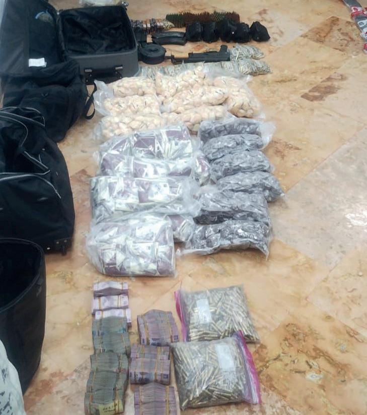 Nacional aseguraron un importante cargamento de armas, cartuchos y presunta droga durante un operativo realizado en el área de equipajes del Aeropuerto Internacional de Cancún.