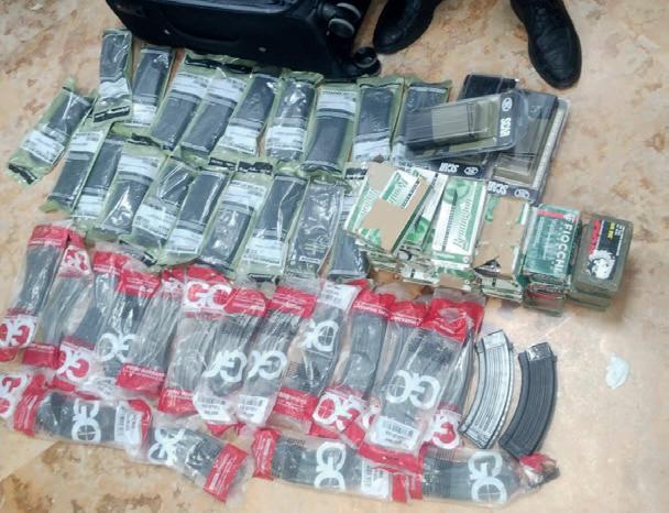 › Parte del arsenal incautado: cartuchos, cargadores y equipo táctico