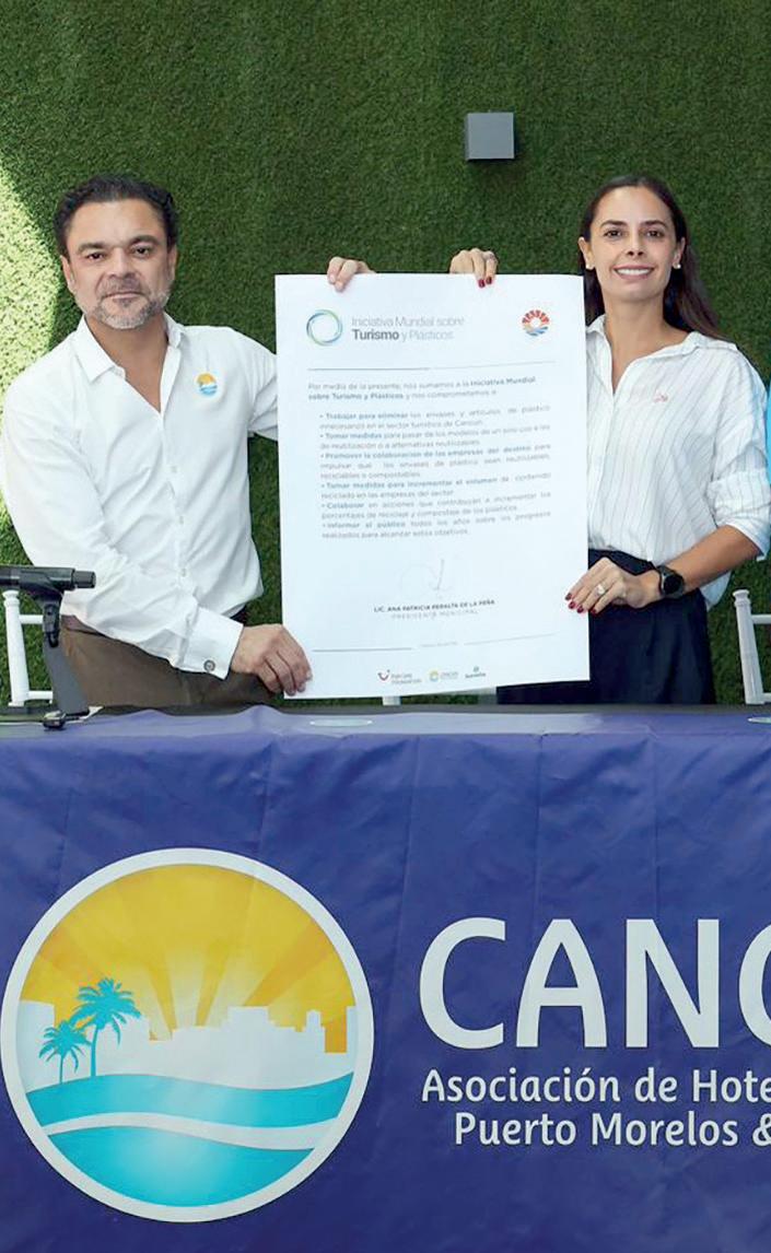 › La presidenta municipal, Ana Paty Peralta, signó la adherencia a la Iniciativa Mundial sobre Turismo y Plásticos de ONU Turismo, para reducir el uso de residuos sólidos, especialmente plásticos y vidrio.