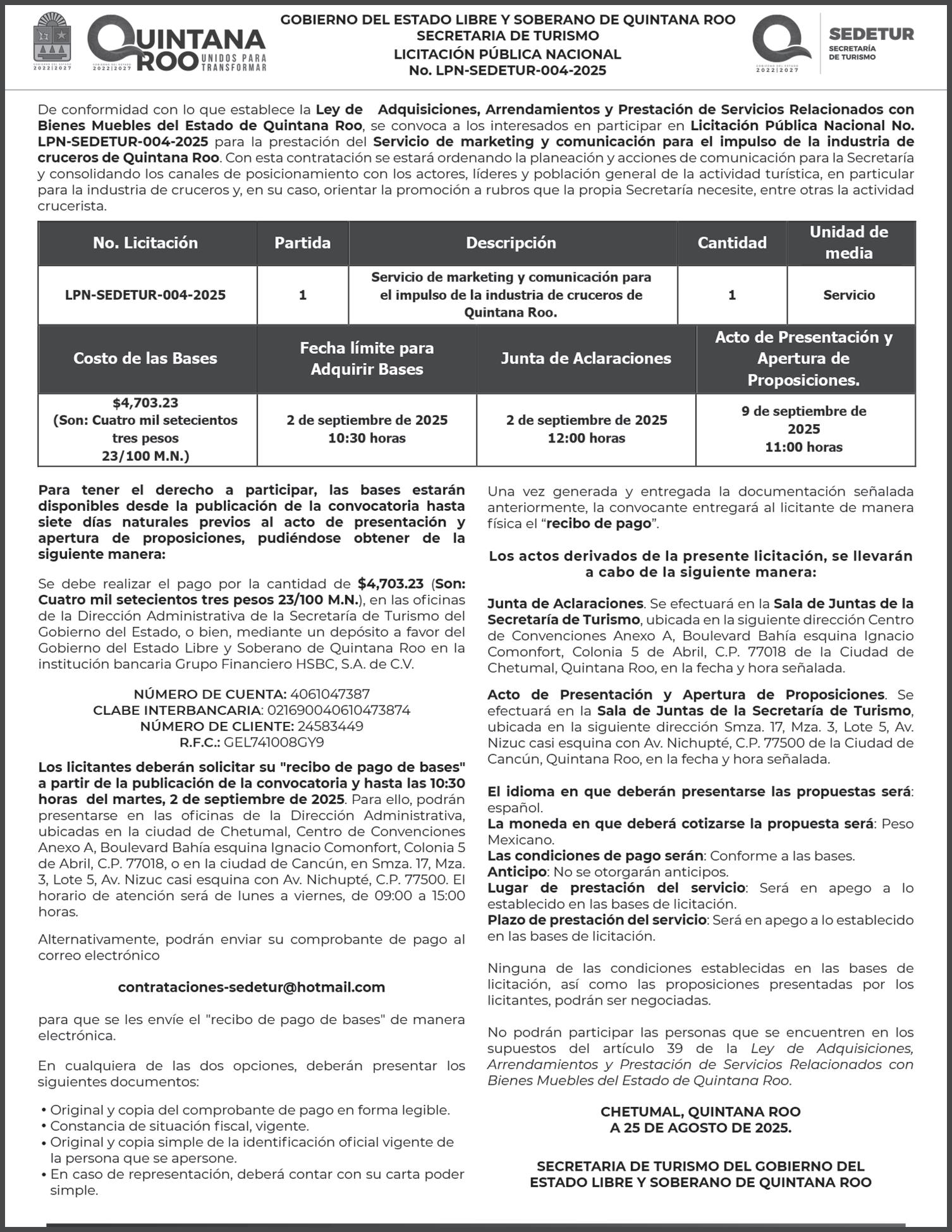 El reporte señala que en la primera mitad de agosto, la inflación en Cancún fue de 0.24%, el séptimo indicador más elevado del país, con lo cual el acumulado en 2025 llegó a 2.04%; mientras Chetumal