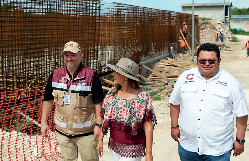 Por Redacción › Quequi La gobernadora Mara Lezama Espinosa y el director de la Comisión de Agua Potable y Alcantarillado (CAPA), Hugo Garza Sáenz, recorrieron las obras de ampliación de la planta de tratamiento “San Miguelito”, que permitirá duplicar la capacidad de aguas residuales tratadas de 110 a 230 litros por segundo, para protección de la salud de todas las familias cozumeleñas.