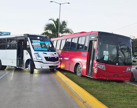 Un choque entre dos autobuses ocurrió en el bulevar Luis Donaldo Colosio, cerca de la delegación de Alfredo V. Bonfil, sin que se reportaran personas lesionadas. Tras no llegar a un arreglo, los conductores