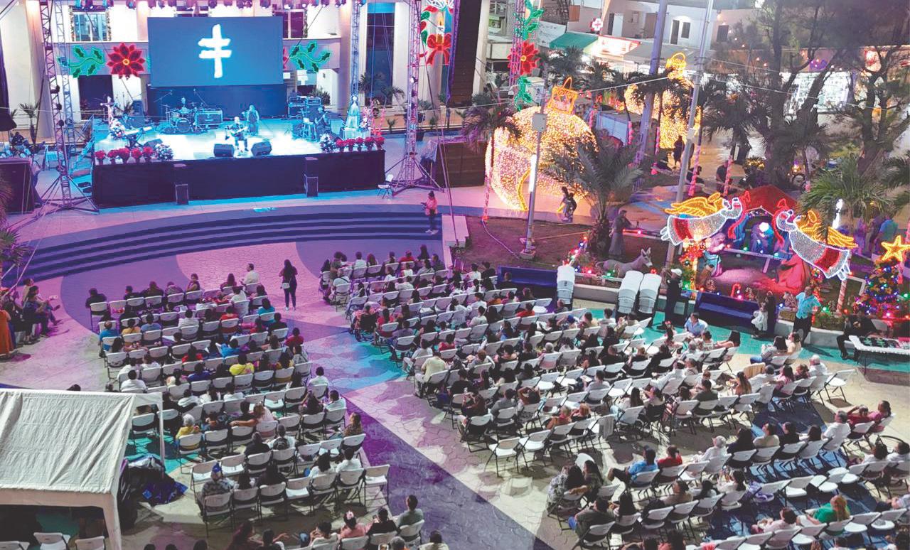 › Con la presencia de cientos de familias chetumaleñas, la gobernadora y la presidenta del DIF encabezaron el encendido del árbol.
