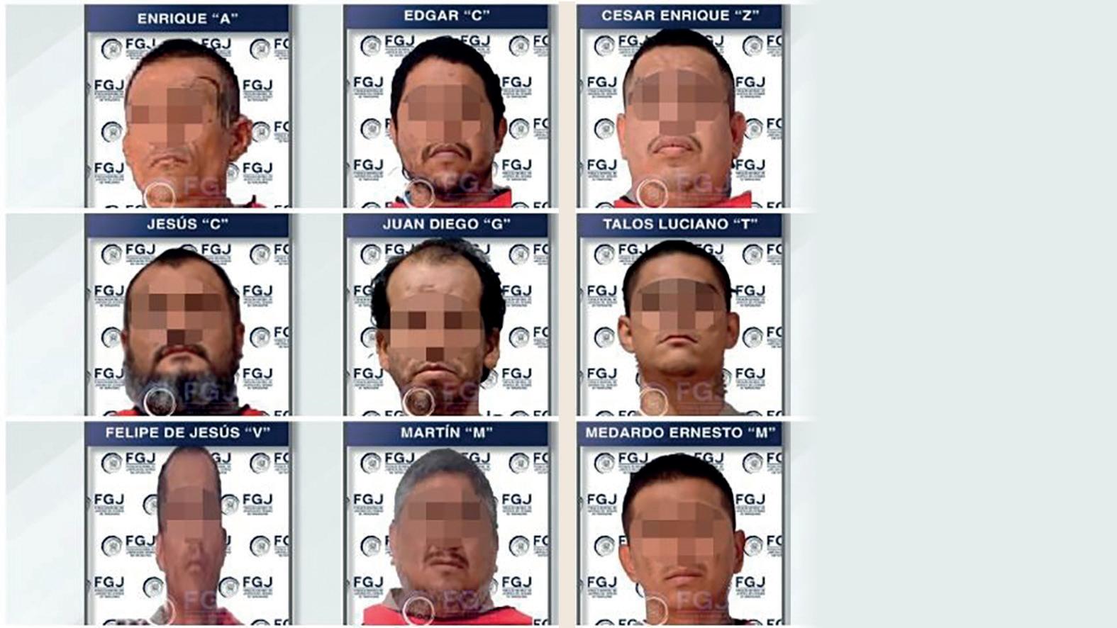 Tras lo anterior se ejecutaron órdenes de aprehensión por reclusión contra 12 personas, identificadas como César Enrique “Z”, Edgar “C”, Enrique “A”, Jesús “C”, Juan Diego “G”, Talos Luciano “T”, Felipe de Jesús “V”, Martín “M”, Medardo Ernesto “M”, Vicente “M”, Juan Francisco “R”, mientras que a Eduardo “G” se les ejecutó otra orden de aprehensión por extorsión. En la acción participaron ele-