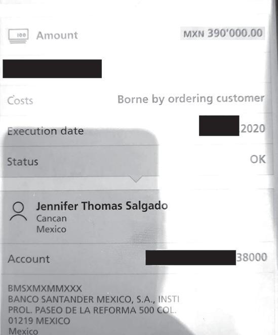 › Una de las cuentas donde se realizan depósitos está a nombre de Jennifer.