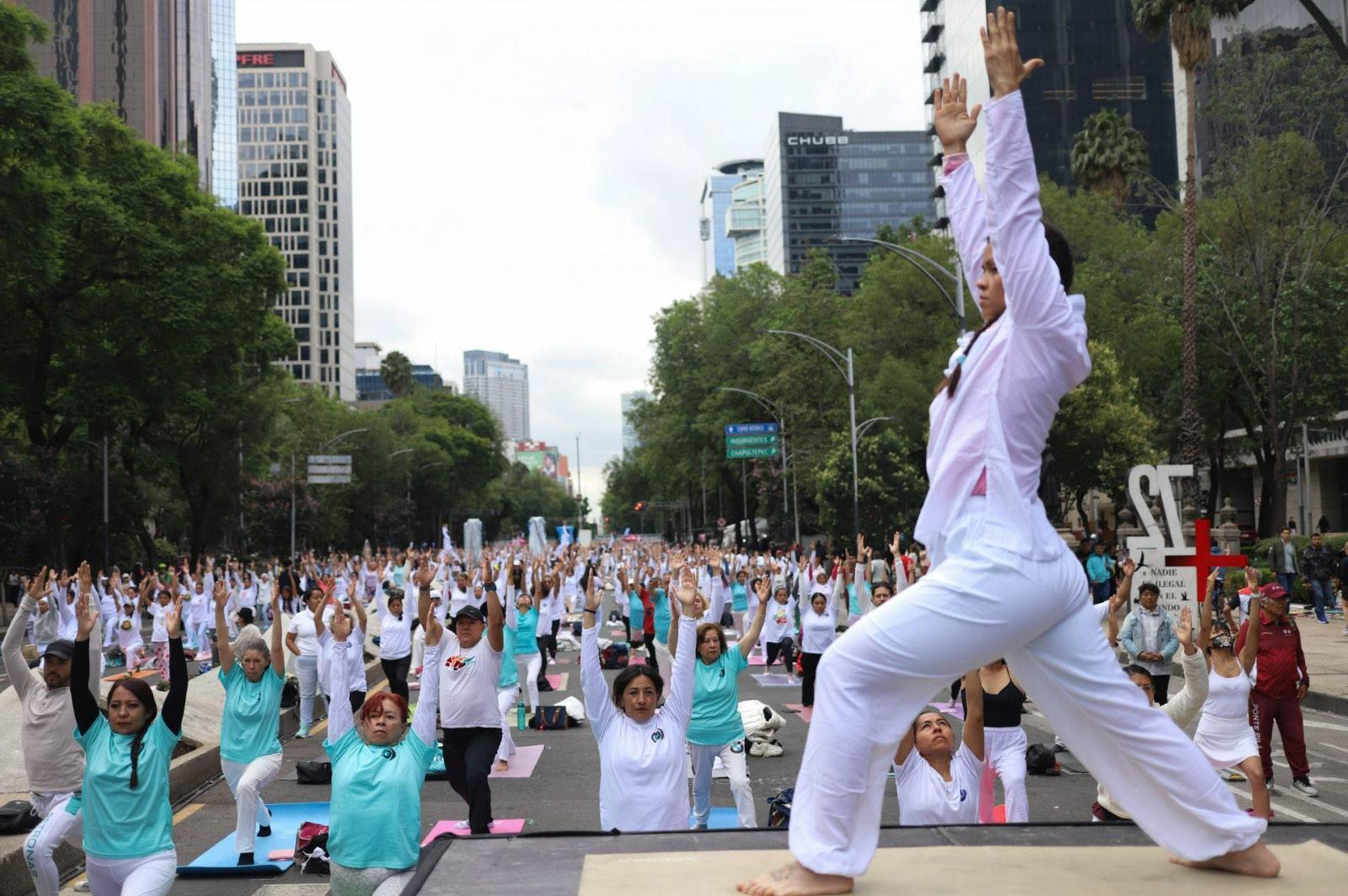 Comunidad. Cerca de tres mil personas se congregaron en el Paseo de la Reforma hasta la Glorieta del Ahuehuete en la Alcaldía Cuauhtémoc, para participar en la “Clase Masiva de Yoga por la Paz”.