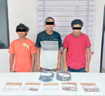En Cozumel, Juan Carlos “N”, Brayan Esteban “N” y Weslyn Alexander “N” fueron sorprendidos en el estacionamiento de una tienda intercambiando bolsitas con marihuana y cristal, lo que derivó en su detención.