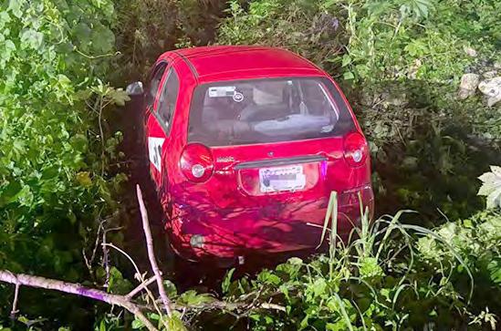 Accidente. El conductor de un Chevrolet Matiz perdió el control en avenida 135, a un costado de Residencial Aqua en Cancún, saliéndose del camino y finalizando dentro de un área verde.