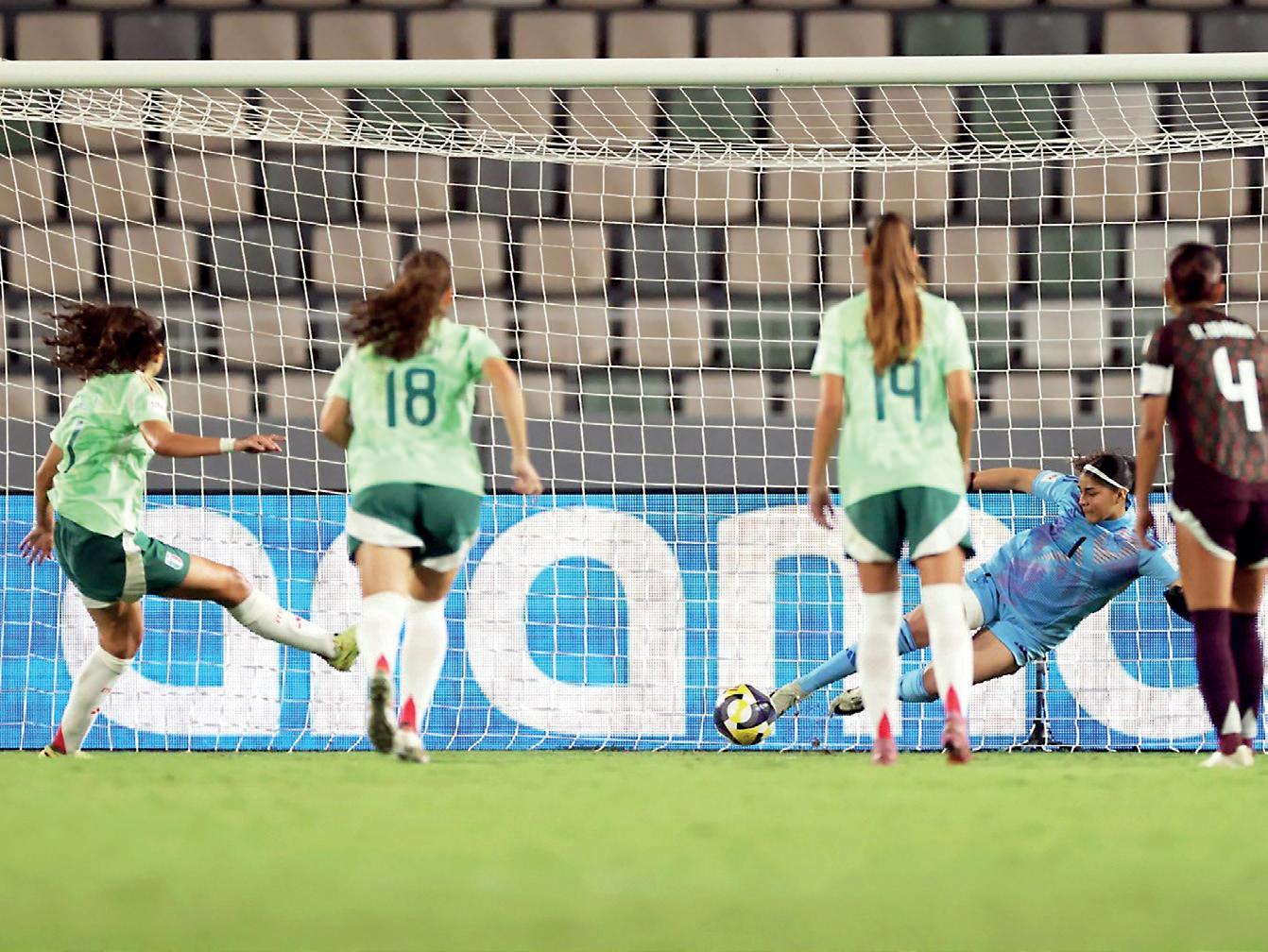 El primer tiempo lo tuvo de todo. Una montaña de emociones súbitas y dos penaltis contra las mexicanas que no terminaron en gol gracias a la actuación de la meta Valentina Murrieta.